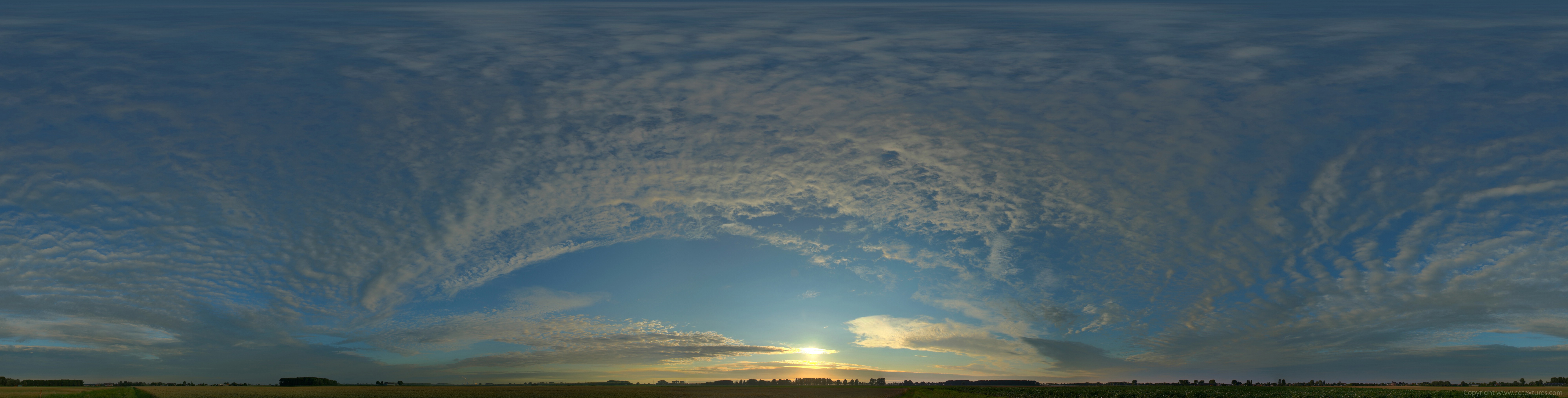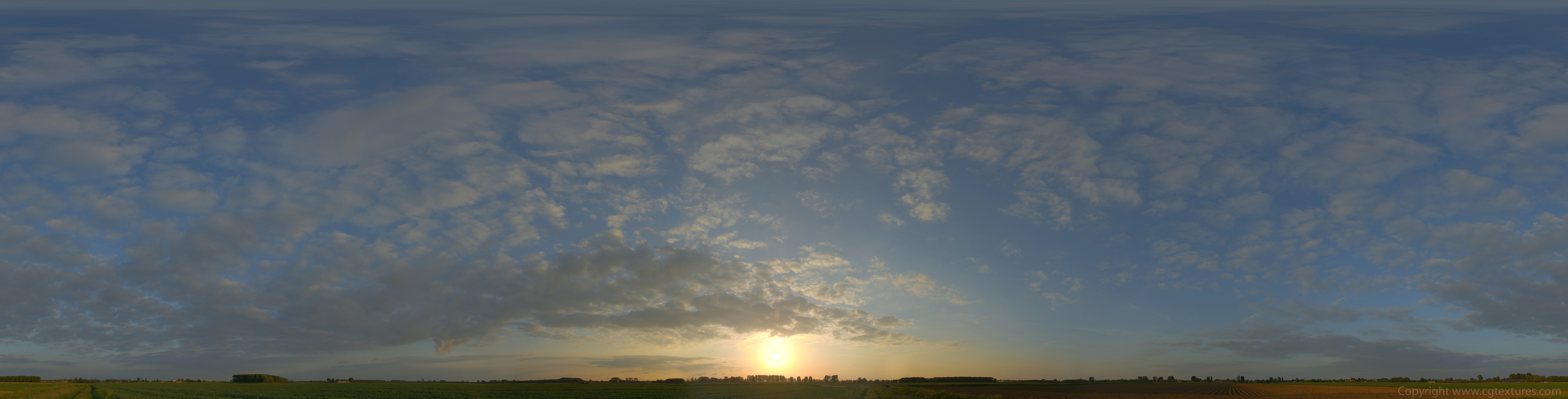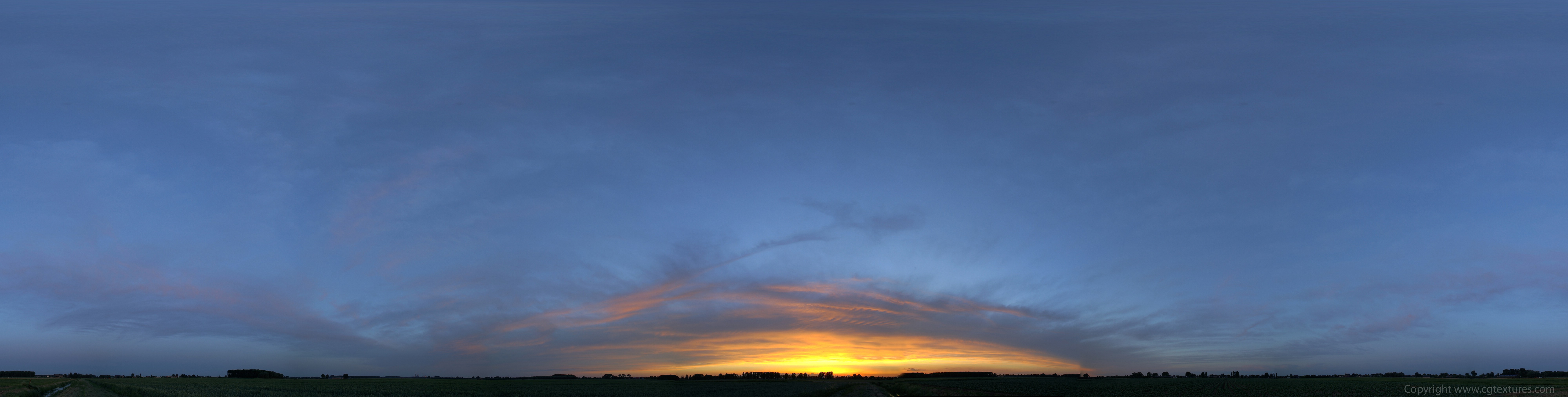 Текстуры неба при закате включают изображения с характерными цветовыми переходами, возникающими в вечернее время — от тёплых оранжевых и красных оттенков до более тёмных фиолетовых и синих тонов. Такие материалы используются для создания атмосферных фонов, визуализации природных и городских сцен, а также при работе с освещением в графических и 3D-проектах. Текстуры неба подходят для использования в Photoshop, Blender и других программах для работы с изображениями и трёхмерной графикой.