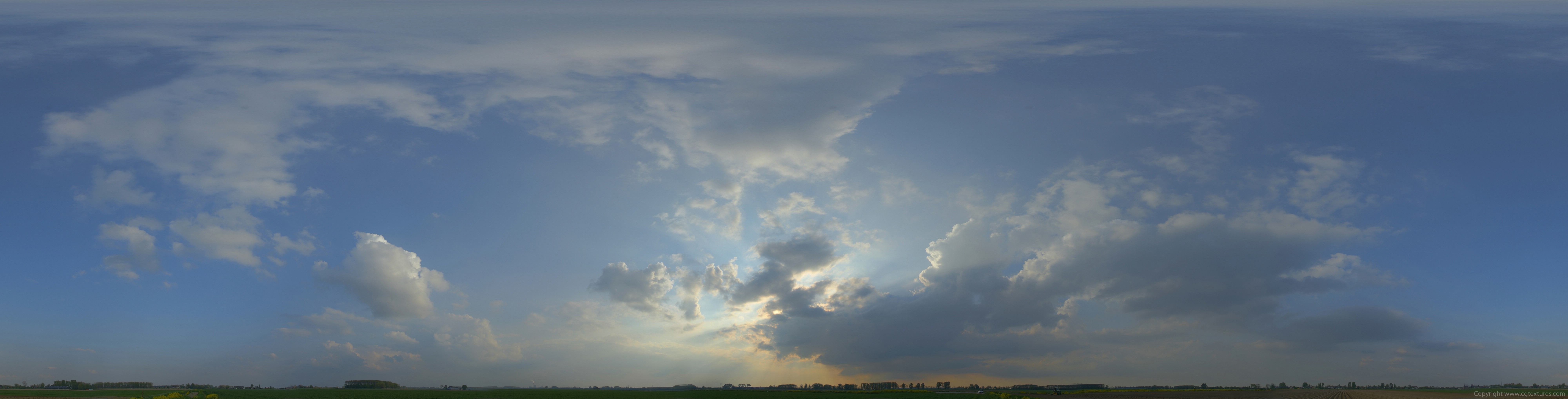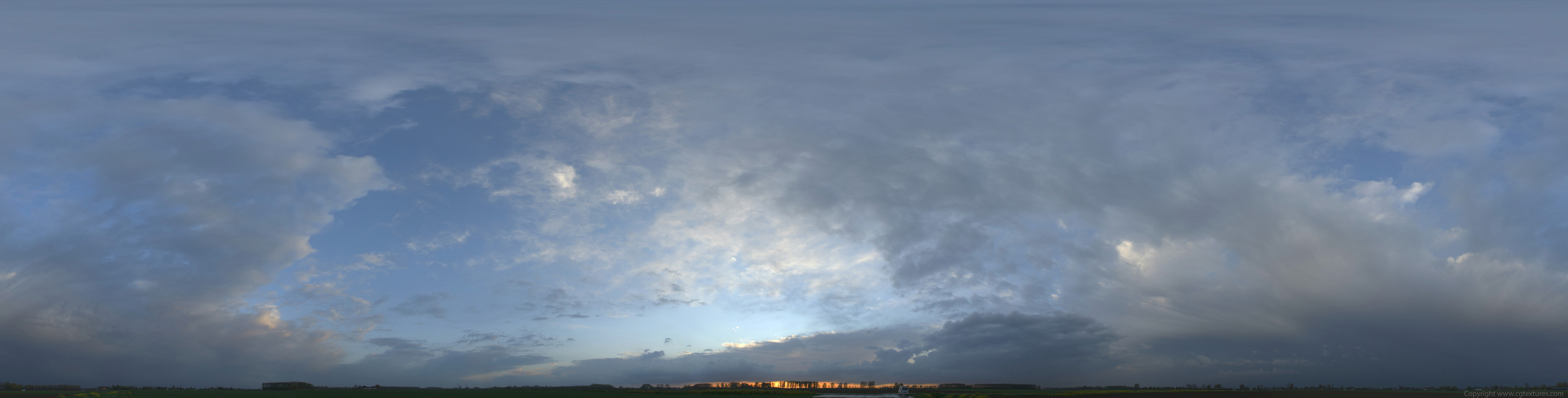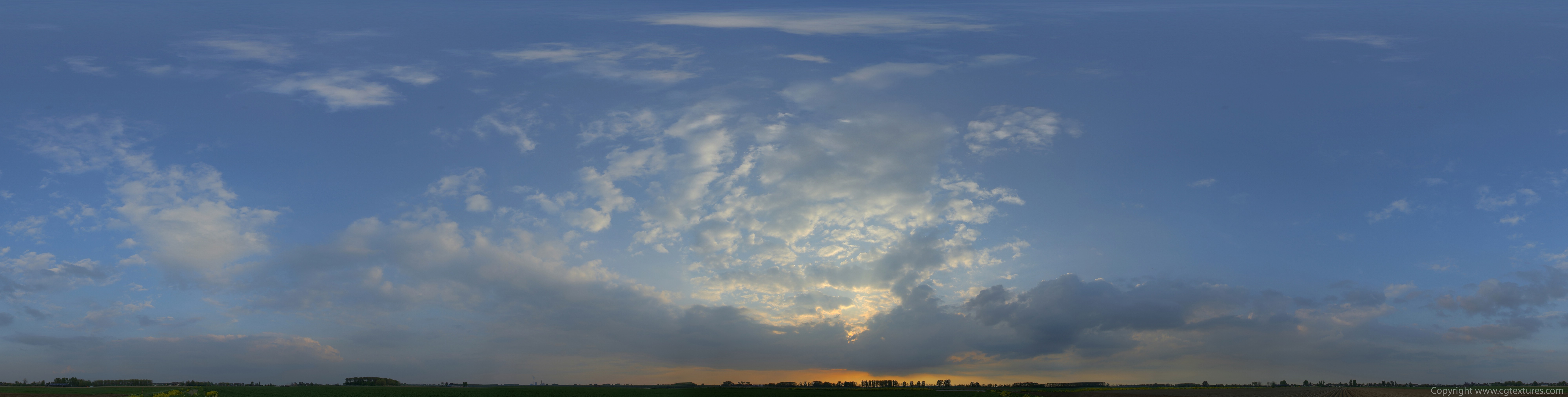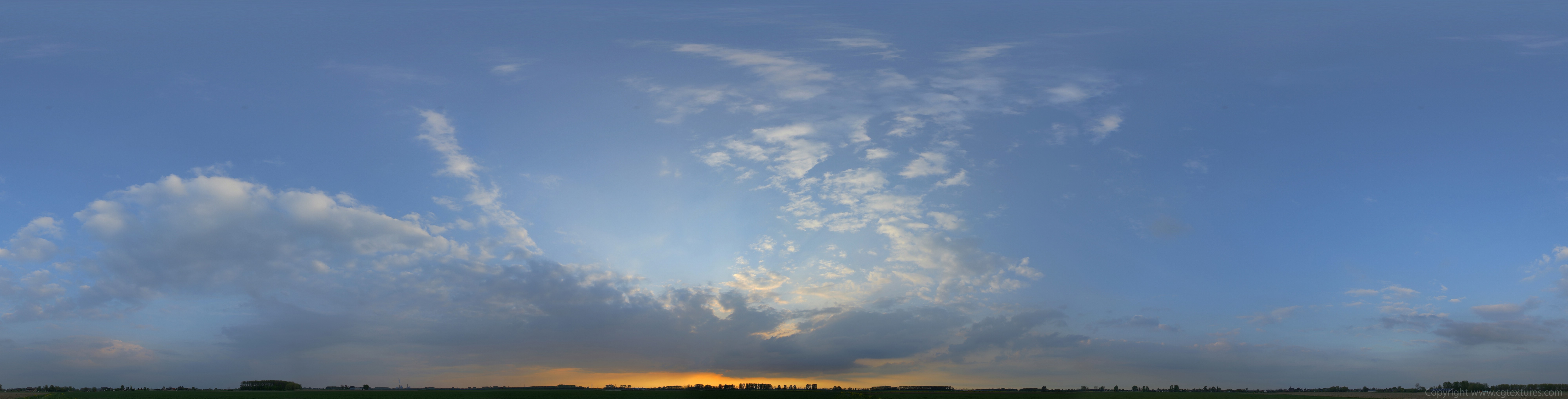 Текстуры неба при закате включают изображения с характерными цветовыми переходами, возникающими в вечернее время — от тёплых оранжевых и красных оттенков до более тёмных фиолетовых и синих тонов. Такие материалы используются для создания атмосферных фонов, визуализации природных и городских сцен, а также при работе с освещением в графических и 3D-проектах. Текстуры неба подходят для использования в Photoshop, Blender и других программах для работы с изображениями и трёхмерной графикой.